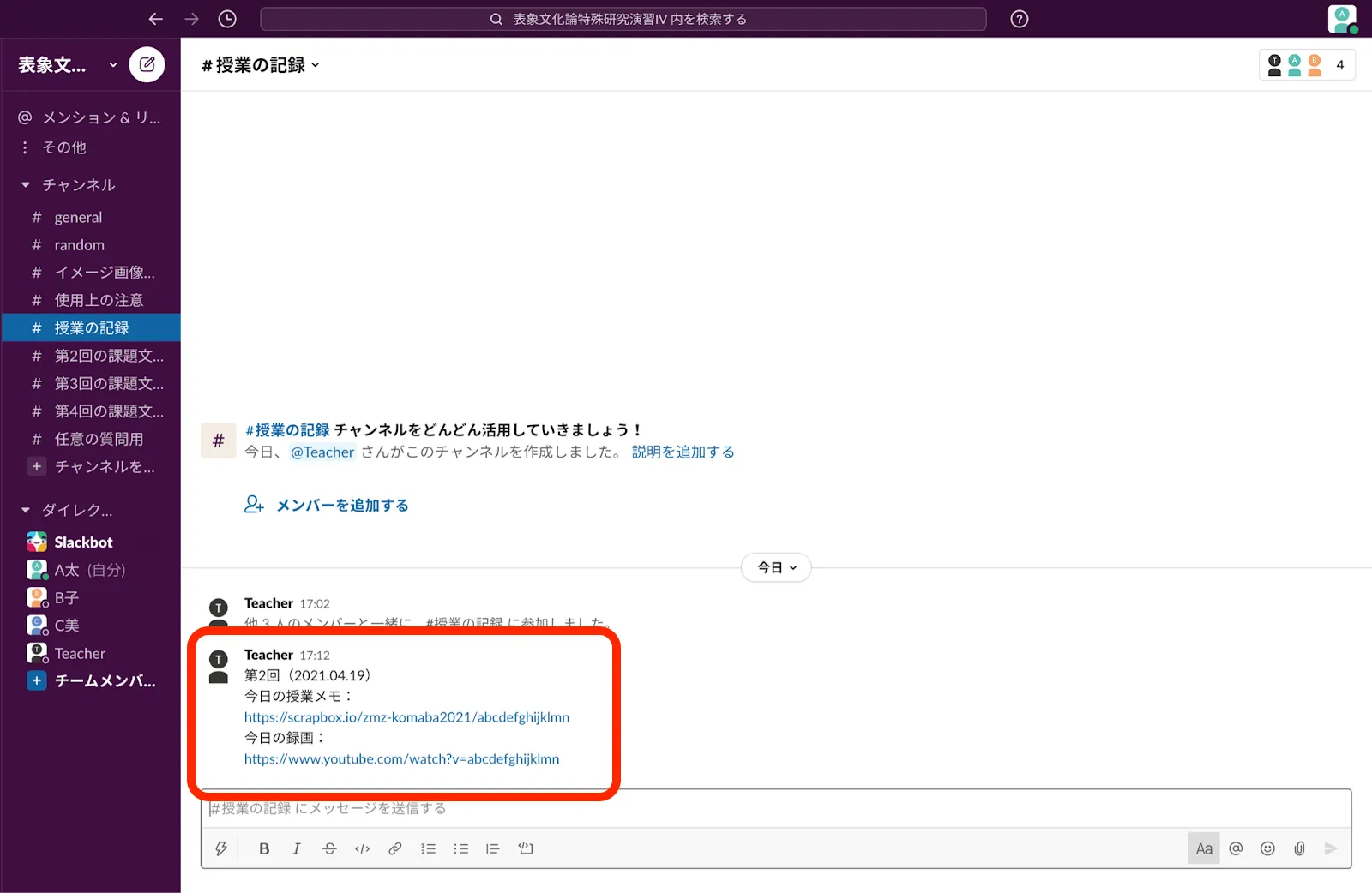 - Slackについての詳細,インストール方法,授業での使い方に関しては「Slackで学生とコミュニケーションを取る方法」の記事も併せてご確認ください.