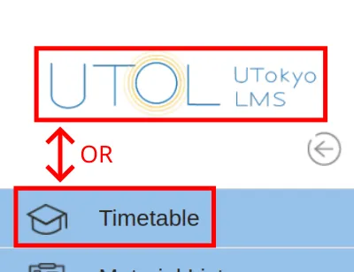 You can also access this screen by clicking the UTOL logo in the left menu (the menu on the left-hand side when you press the button in the top-left corner) or by clicking the “Timetable” button.