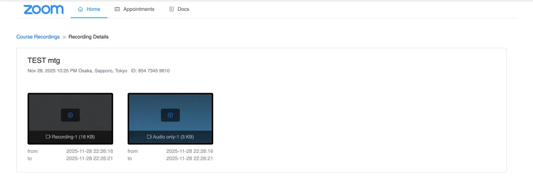 When the course instructors or TAs have record Zoom meetings configured using an LTI integration onto the cloud, enrolled students can view the recordings through a web browser.