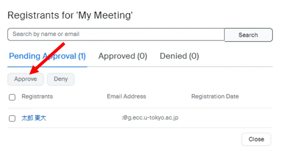 - A list of prospective participants who have completed the registration procedure will be displayed in the “Pending Approval” list on the displayed screen.