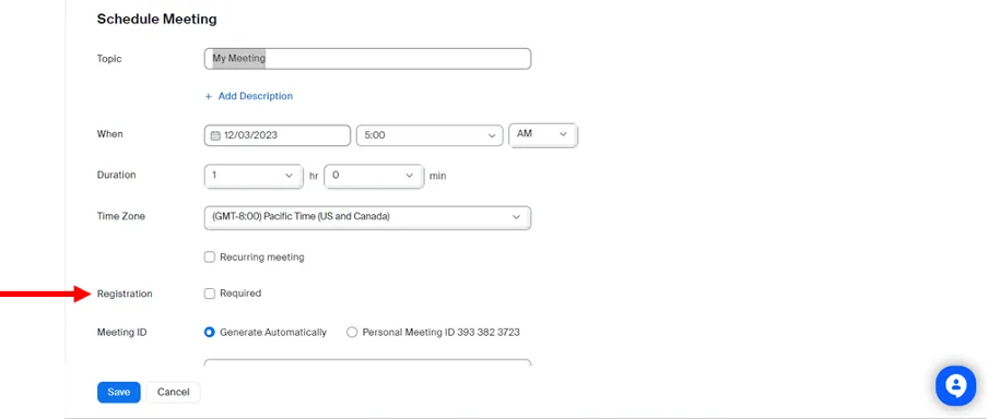 When Creating a New Meeting Requiring Participant Registration