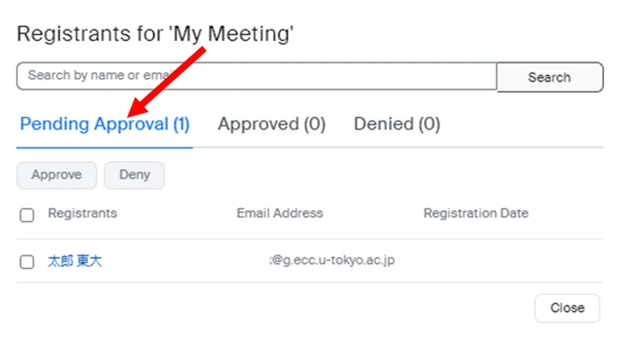 ※The list of approved prospective participants can be viewed in the “Approved” list, which is located to the right of the “Pending Approval” list.