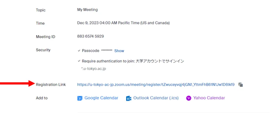 - Please inform the prospective participants of the “Registration Link” displayed on the next screen and guide prospective participants to enter their UTokyo Account (10-digit Common ID+