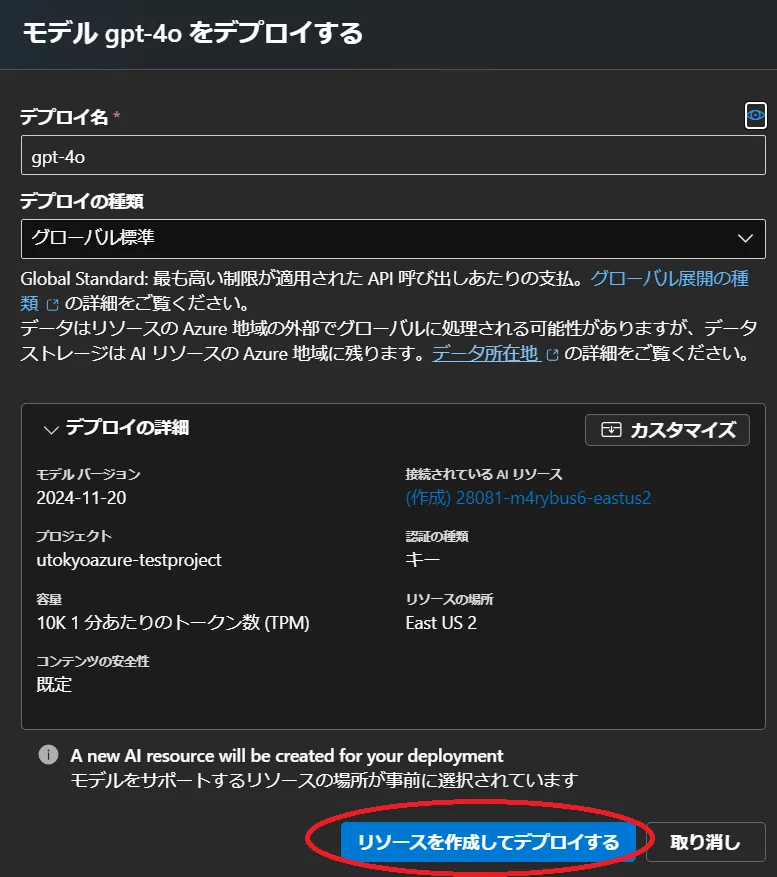 3.Azure AI Foundry のプロジェクトにモデルをデプロイする
