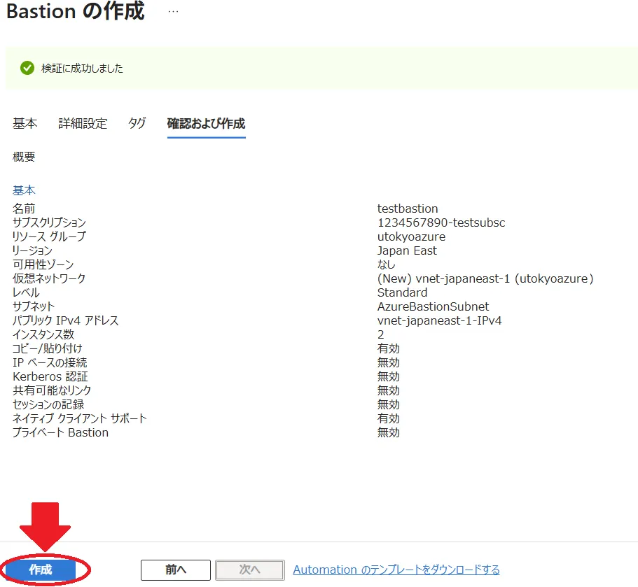2-2. 画面右側,主画面に Bastion の作成が表示されるので,以下の設定を行う.