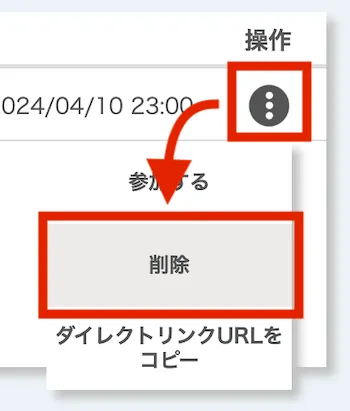 アイコンを押してから,「削除」を選択してください.