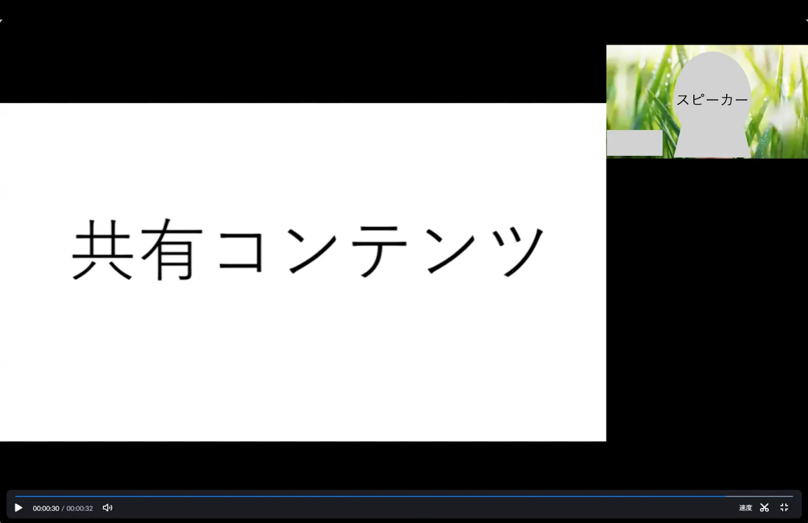 また,ミーティング中に参加者が画面共有を行った場合,その共有コンテンツもレコーディングされます.共有コンテンツを含む場合のレイアウトは,参加者のビデオの表示の有無や配置は,録画をしている人が事前に設定したレイアウトに従います.